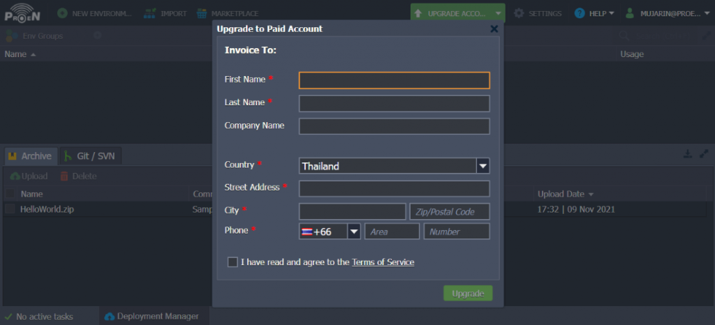 - กรอกข้อมูลให้ครบถ้วนและกด “Upgrade”